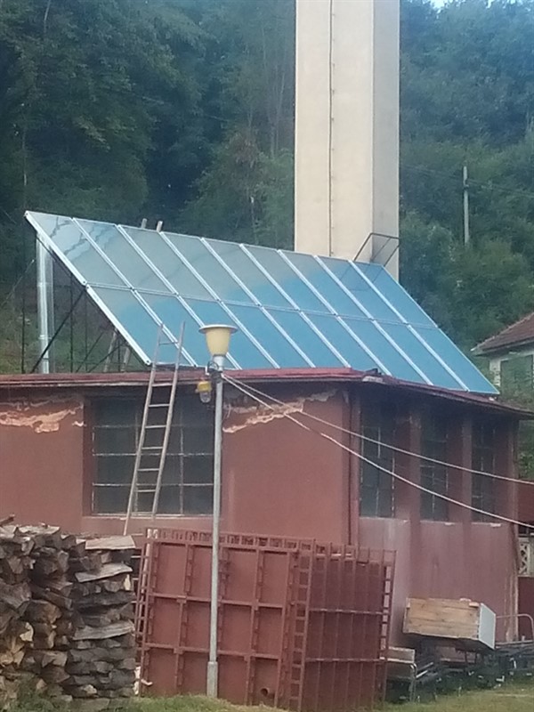 LUCRAREA 11 - INSTALATIE SOLARA PENTRU APA CALDA CU APORT LA INCALZIREA CENTRALA: - beneficiar: SANATORIUL PNEUMOFTIZIOLOGIE BRAD - Brad, Hunedoara- este vorba despre o instalatie cu 18 panouri solare plane si 3 boilere interioare de cate 500L fiecare - sistemul asigura necesarul de apa calda menajera pe durata de 80% din an - de primavara pana toamna in proportie de 95%, iar iarna 20% cu aport la incalzirea centrala pe lemne (in anotimpul rece nu se poate beneficia de energie mai multa oricat de mare ar fi performanta panourilor solare - datorita zilelor inchise, scurte si neinsorite) - instalatia asigura un confort deosebit, apa incalzindu-se datorita SOARELUI in exclusivitate - Instalatia este foarte moderna, complet automatizata, proiectata si executata exclusiv de DORINSOLAR in vara anului 2016, cu o perioada de amortizare a investitiei de 5 ani, iar din punct de vedere al eficientei, prin punerea in functiune a acesteia pe langa faptul ca institutia beneficiaza de apa calda menajera zilnic de la soare, se reduc costurile cu 20 % la combustibilul solid necesar incalzirii pe perioada iernii